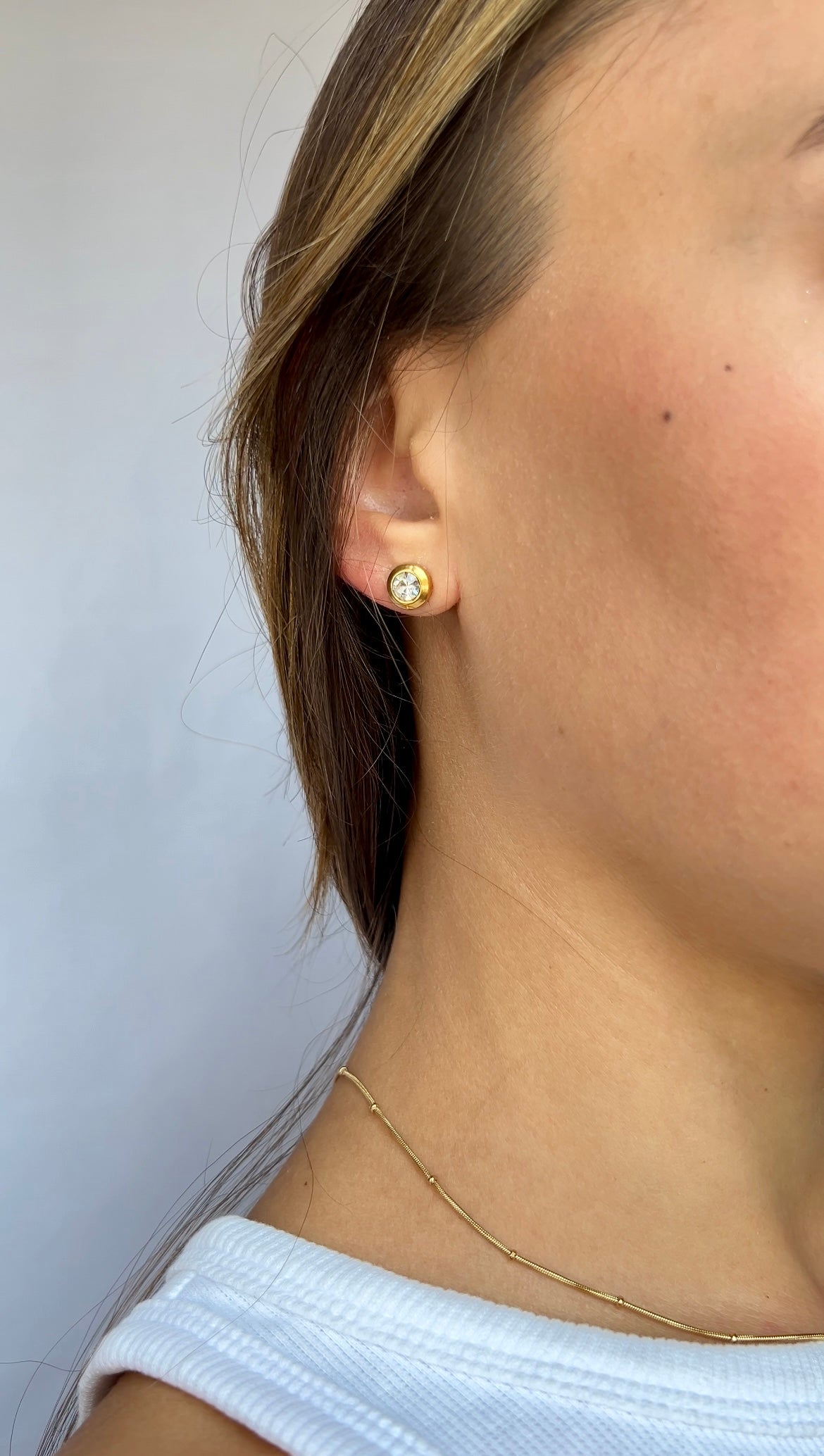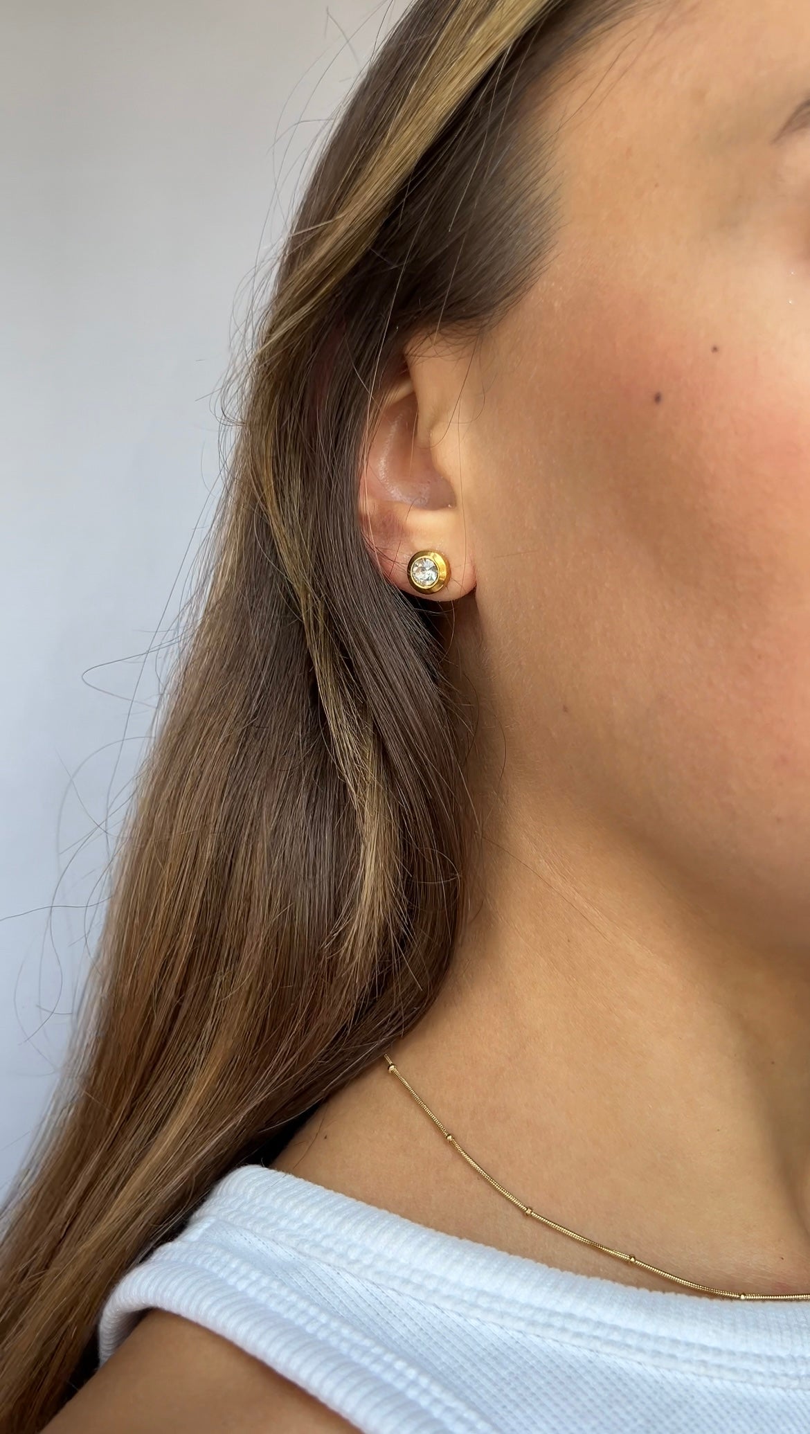 Малки нежно обеци от неръждаема стомана с бял камък на винт по ухото