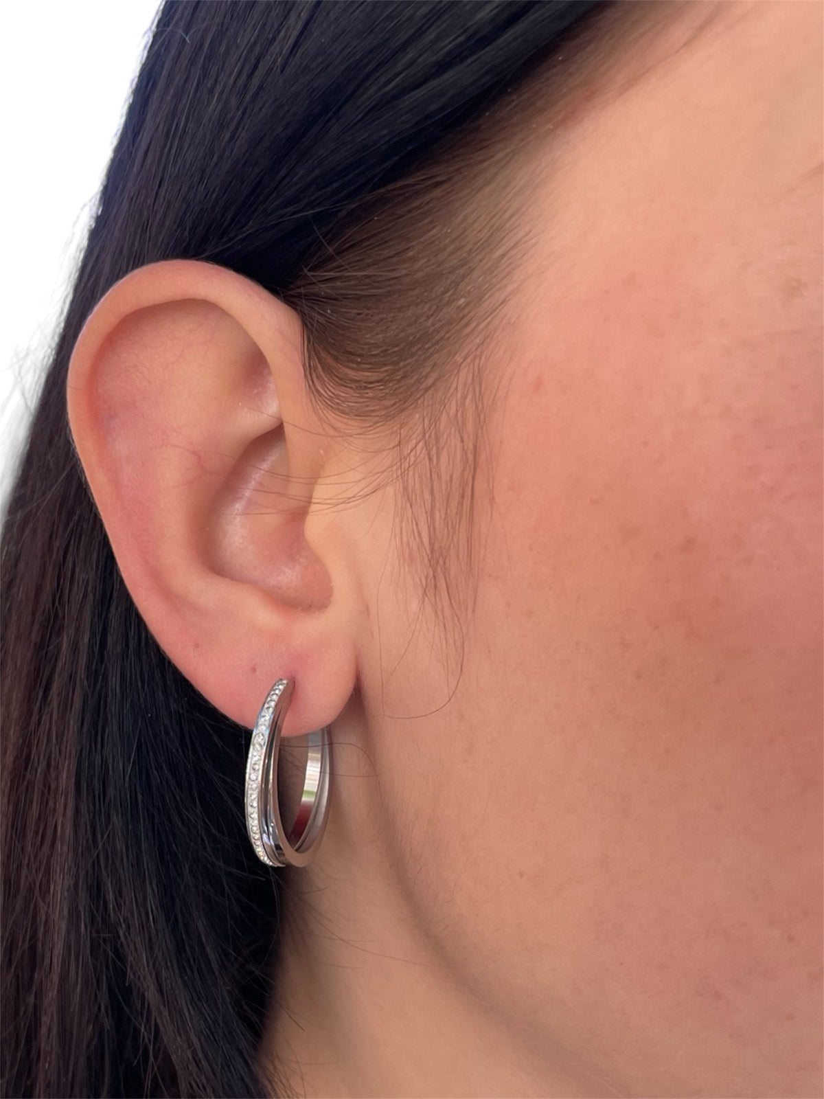 Средни тонки дамски обеци халки с камъни от медицинска стомана на винт