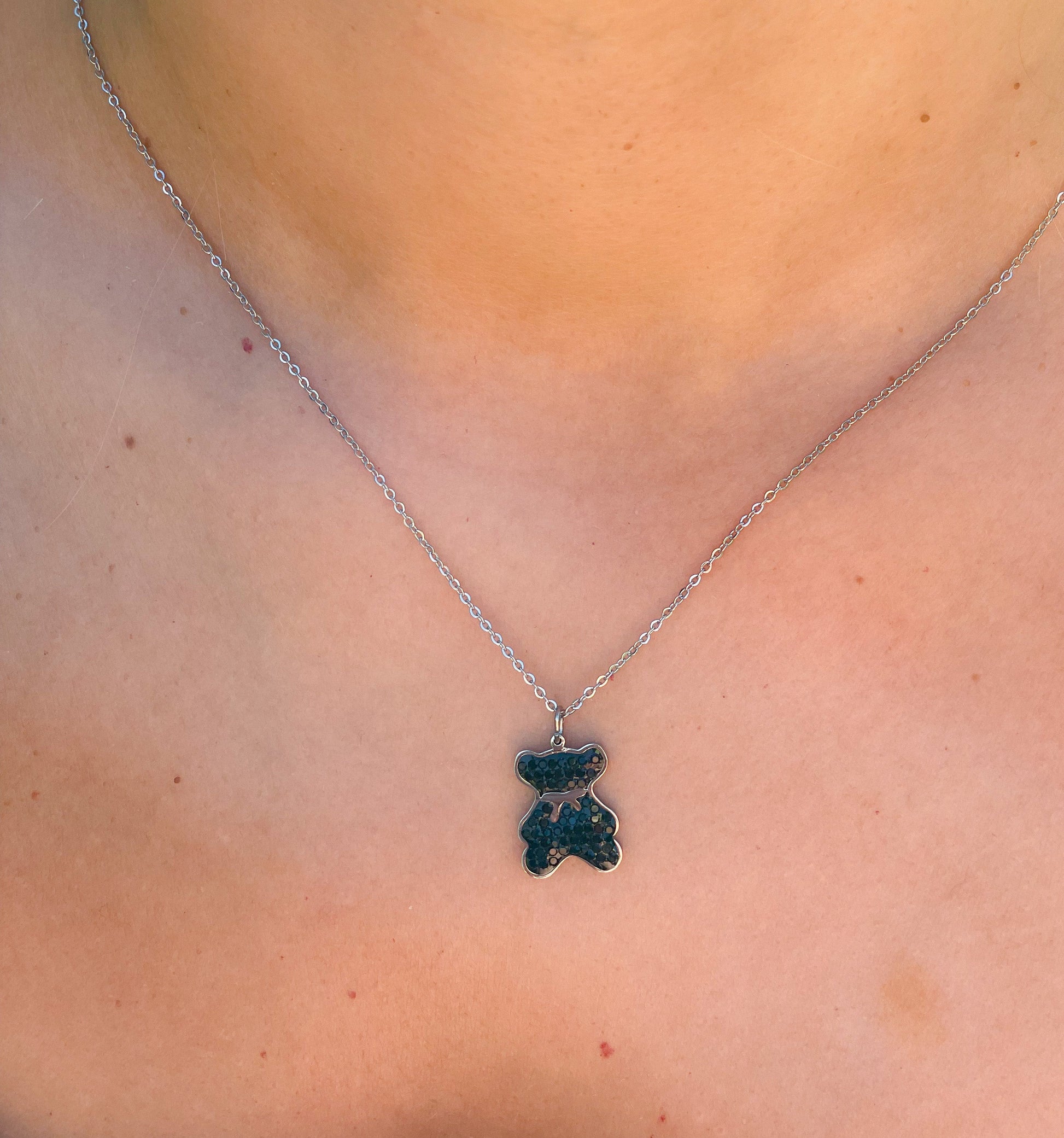 Дамско колие с висулка мече с черни кристали от медицинска стомана 316L