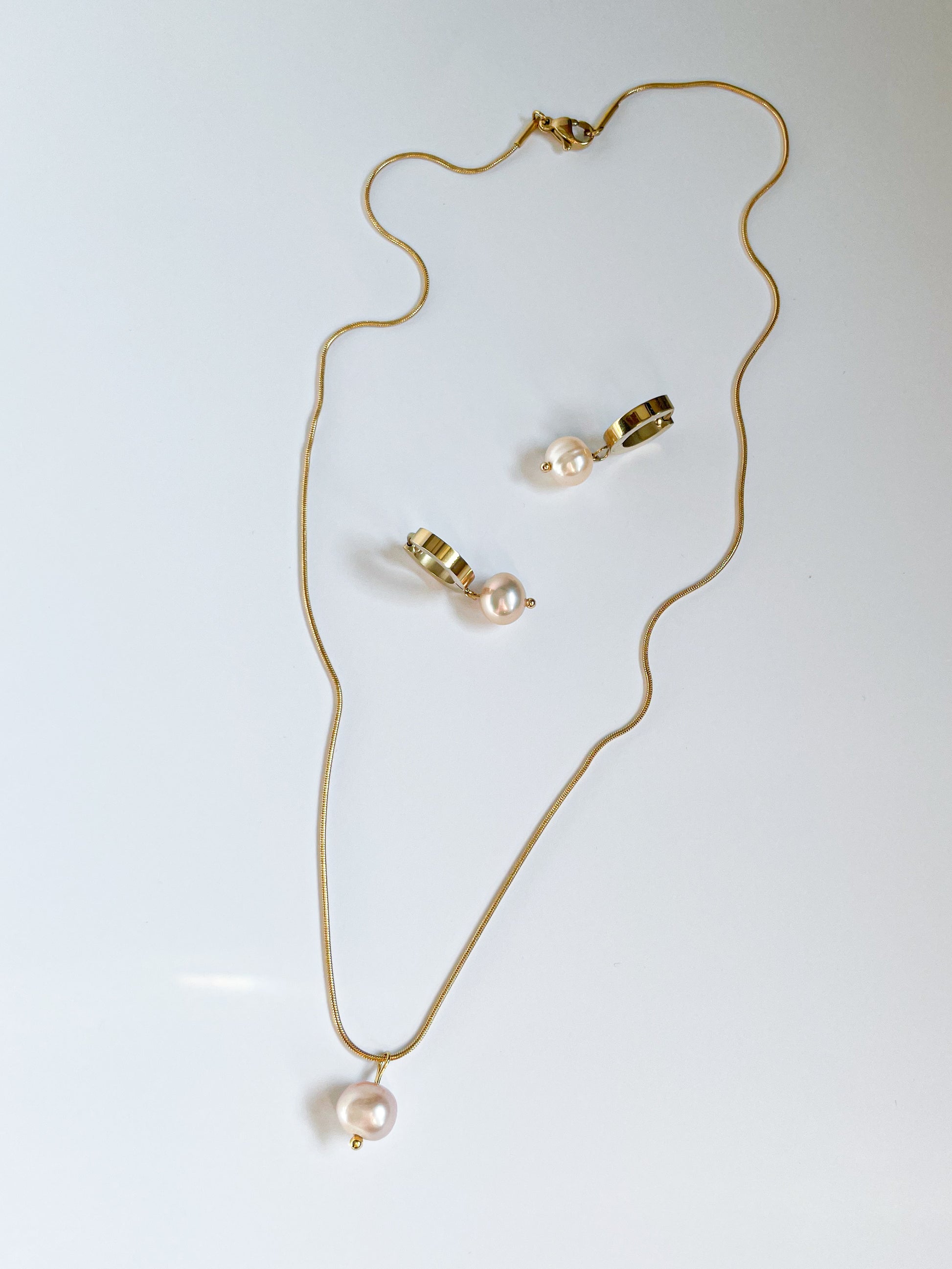 Колие и обеци с естествени розови перли и 14К позлатена медицинска стомана