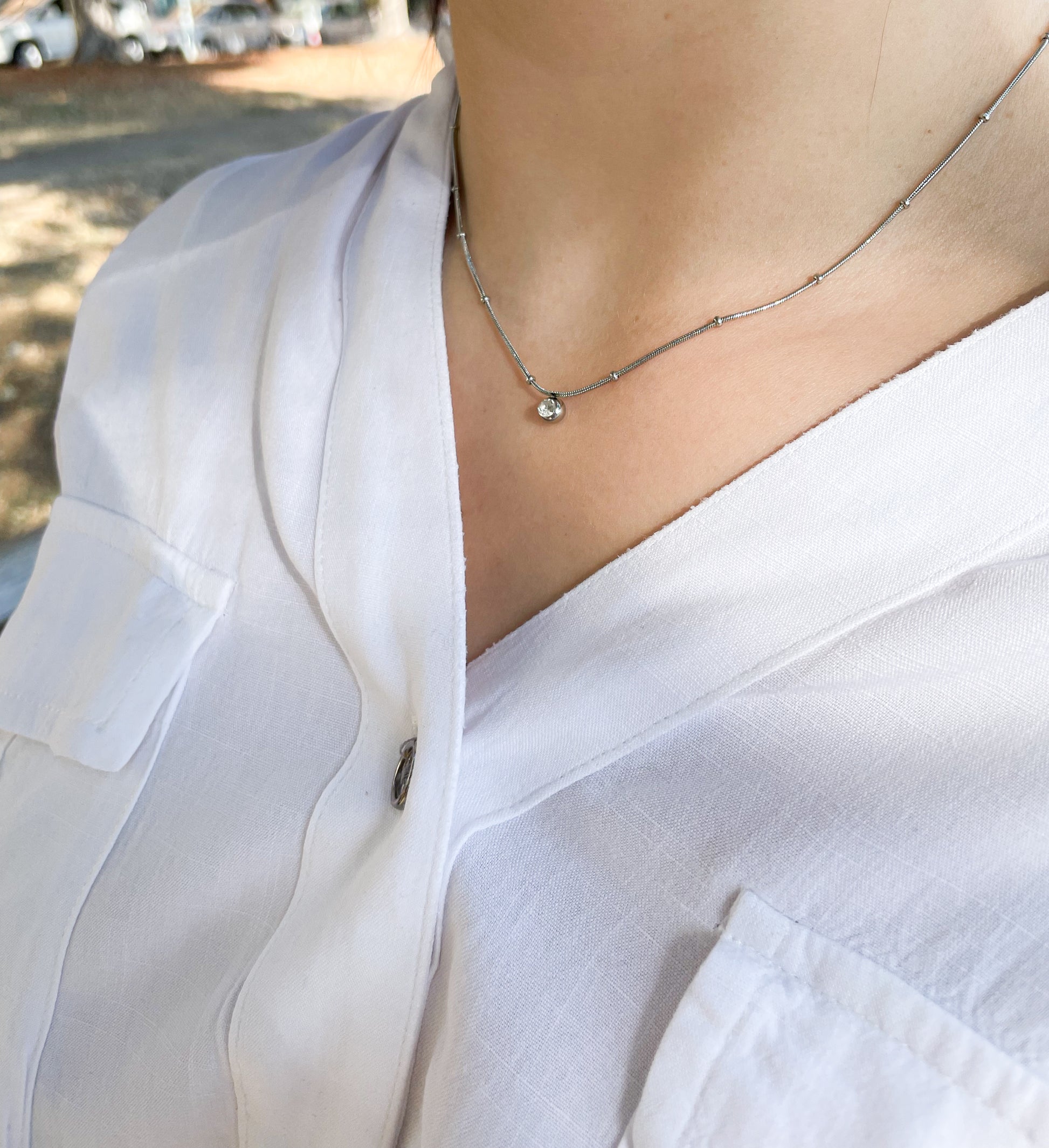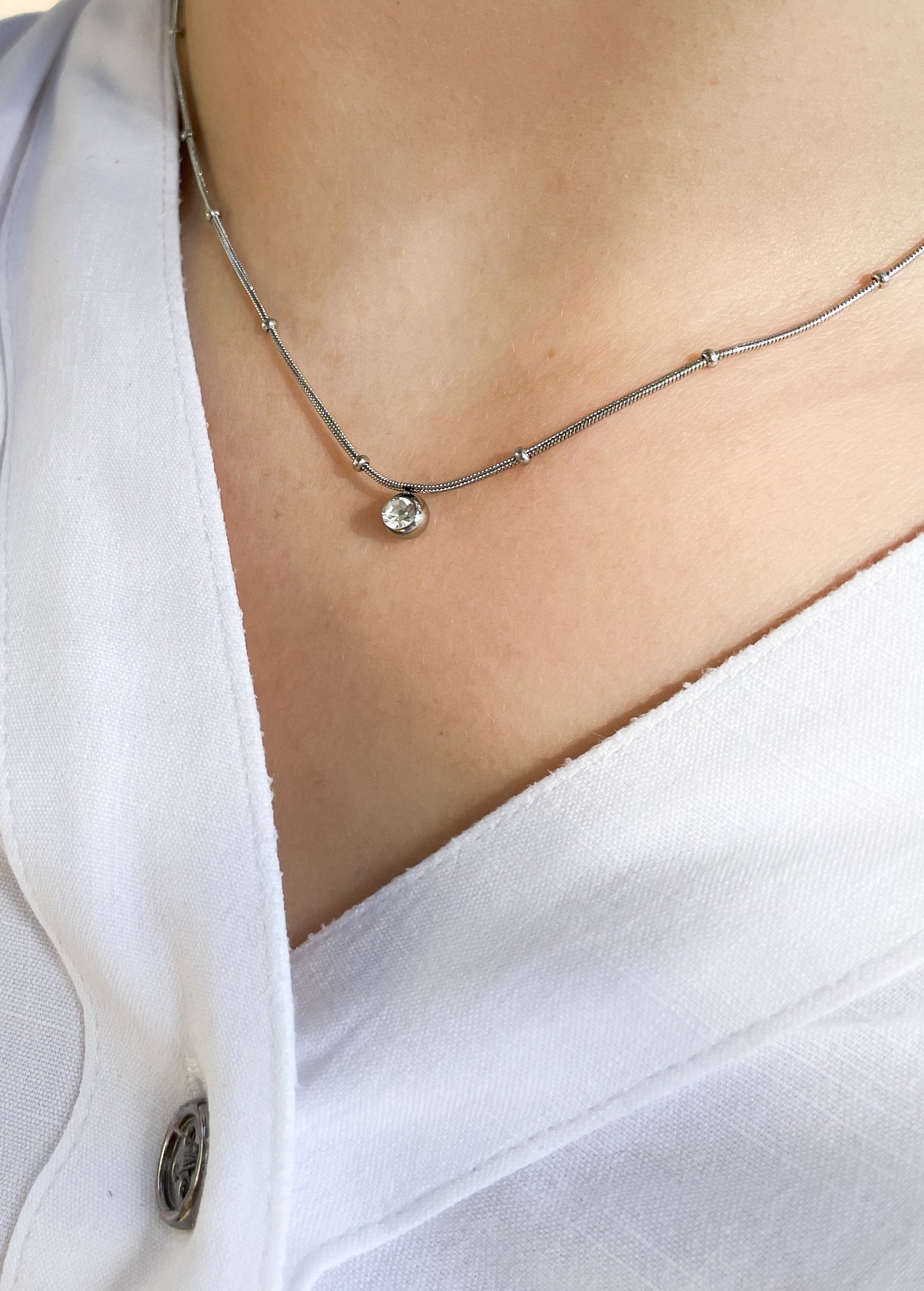 Нежно колие с камъче със синджир с топчета от медицинска стомана