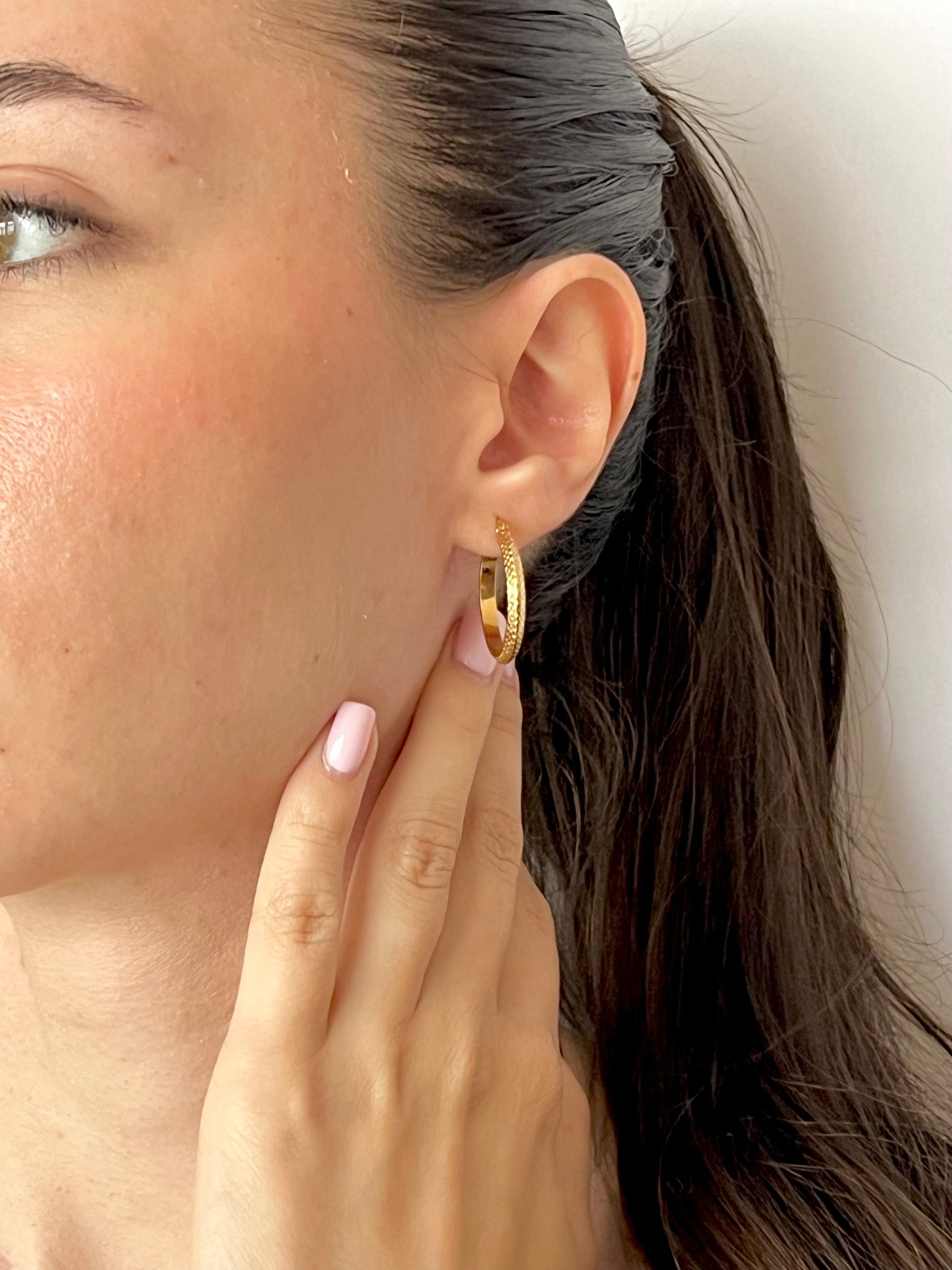 Обеци халки от медицинска стомана 316L в златист цвят с релефни детайли